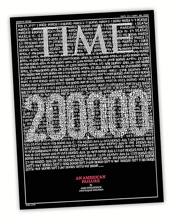 周刊同時在封面文章寫道,美國的新冠疫情是一場「多層面、跨黨派」失敗,社會不信任媒體、科學家及專業知識,種種因素導致美國疫控措施「可怕、有缺陷」,更暴露社會系統性的分化,以及政府所作承諾與現實之間的鴻溝。