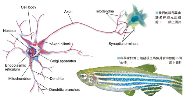 這些神經元活躍的模式與斑馬魚飢餓的感覺看來沒有直接的關係,這就有點兒像我們登山的時候見到毒蛇:毒蛇的影像刺激了我們相關的神經元,告訴我們的身體要馬上跳開;不過跳開以後並不代表腦中的神經元不再活躍:因為恐懼的感覺仍在,而且可能還會在腦中揮之不去,致令與恐懼有關的神經元活動好一陣子。