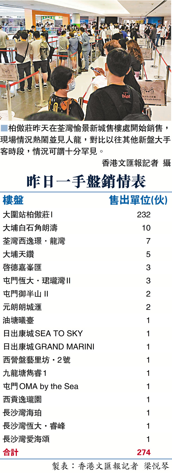 陳永傑又指,約60%買家為用家、40%為投資者,新界客佔約六成,九龍及港島客佔約四成,而項目昨開售成全城焦點,冰封全港一手及二手交投。
