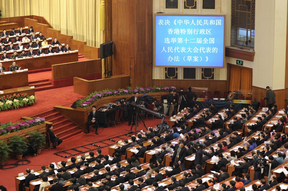 圖:十一屆人大五次會議表決通過香港特區全國人大代表選舉辦法/中新社
