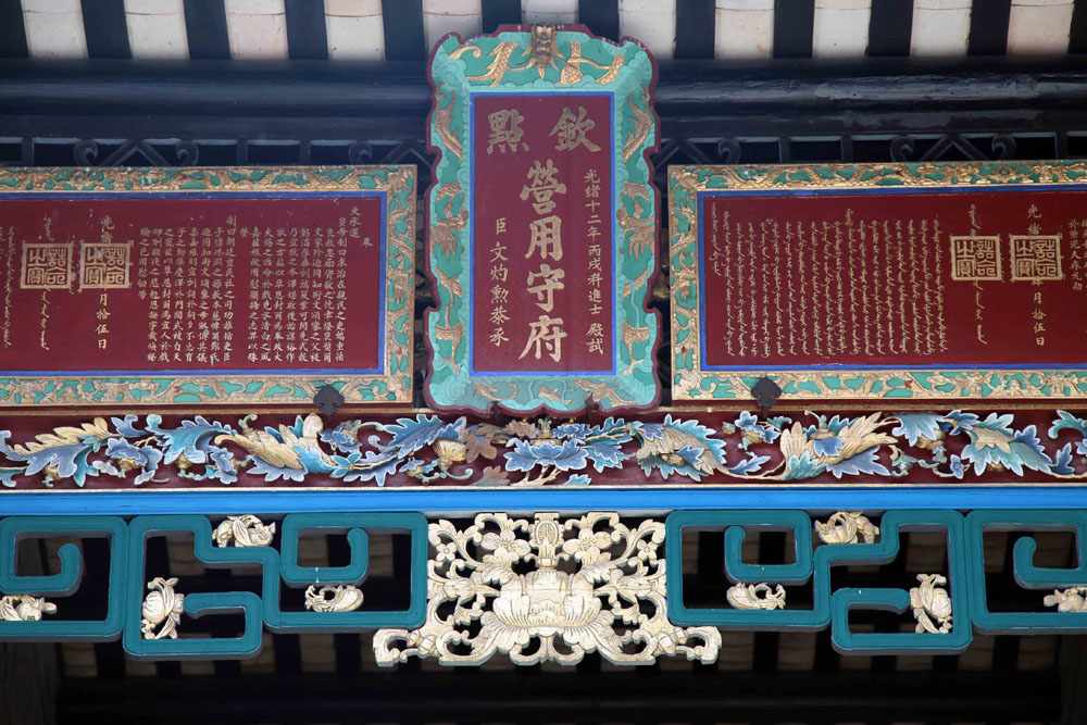 正廳屋簷下掛了兩塊由光緒皇帝於一八七五年御賜的木匾,分別刻上漢、滿文字,讚揚文頌鑾的祖父母及雙親,這種兩文對照的牌匾在香港其他地方絕無僅有。夾在兩幅橫匾之間的是「欽點營用守府」直匾,由清朝官員文灼勳贈予屋主。
