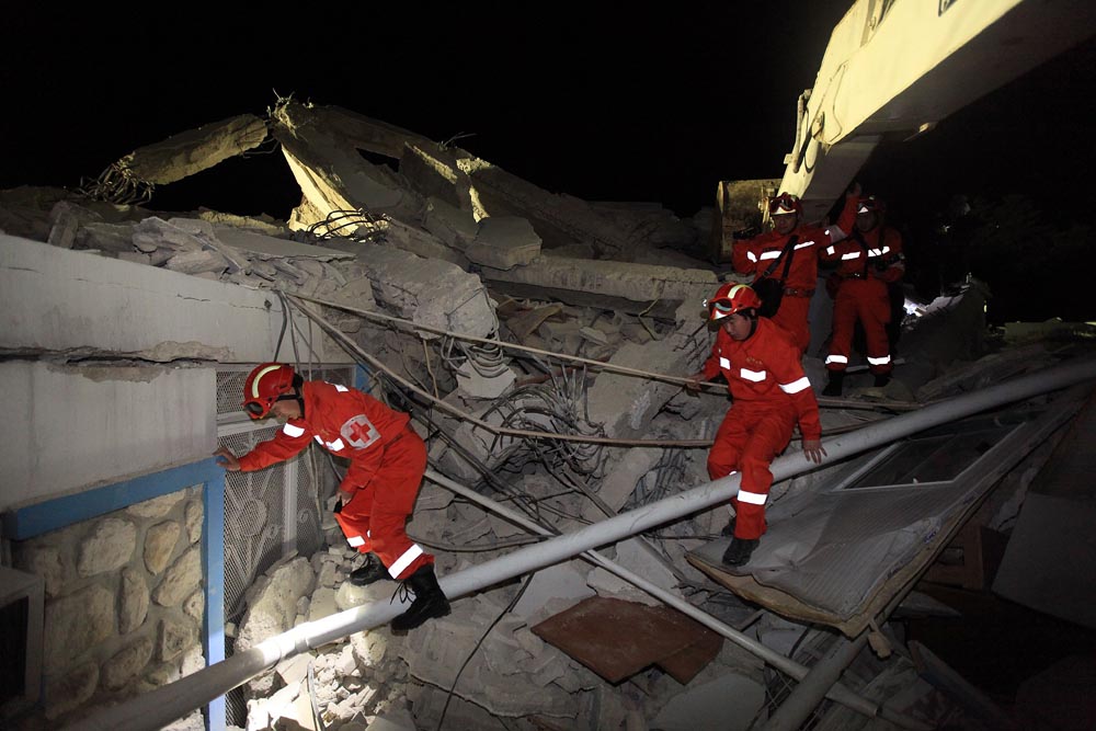 圖:中國國際救援隊隊員在聯合國海地穩定特派團駐地展開救援工作(新華社)