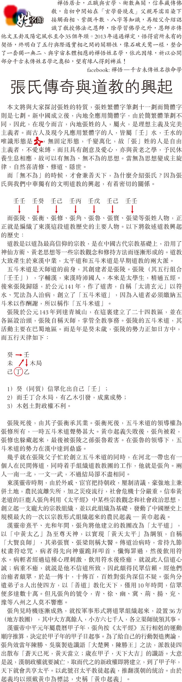 【姓名館】張氏傳奇與道教的興起