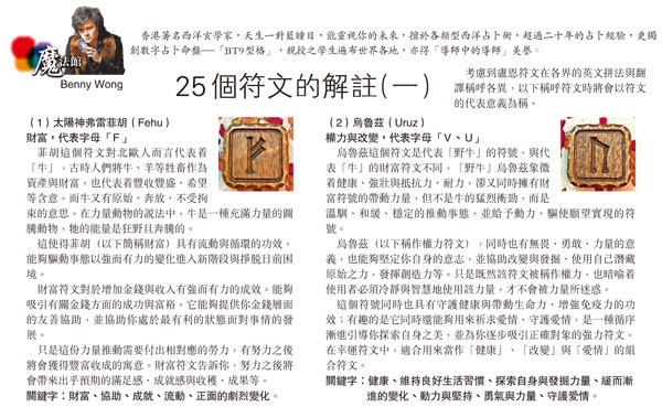 考慮到盧恩符文在各界的英文拼法與翻譯稱呼各異,以下稱呼符文時將會以符文的代表意義為稱。