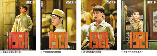 香港文匯報訊(記者 文芬) 將於7月1日上映的電影《1921》,由黃建新監製兼導演,鄭大聖聯合導演,近日發布角色海報,首度曝光了劉昊然、王俊凱、胡先煦、劉家禕的角色。新發布的海報中,4位年輕的代表雖然還是一副稚氣未脫的面龐,但年輕並不能掩蓋他們眼中的光芒,那是一腔熱血望救國的少年氣,也是屬於彼時進步青年的擔當。