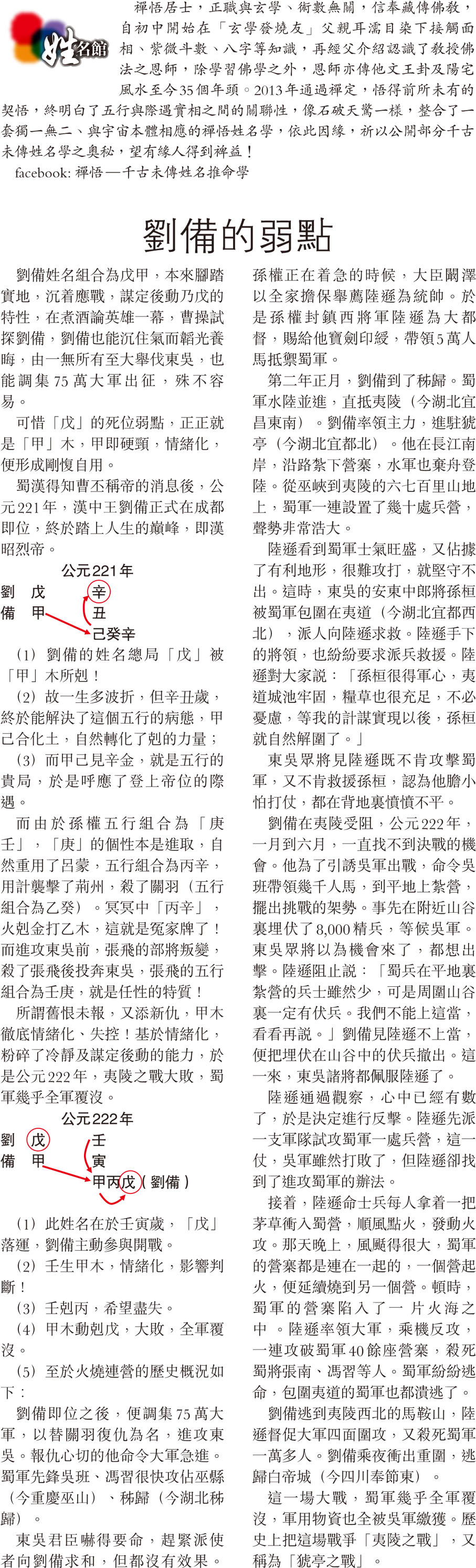 (1)劉備的姓名總局「戊」被「甲」木所剋!