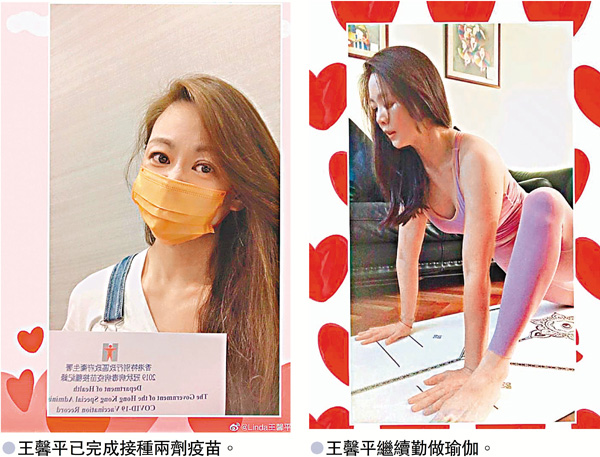 王馨平本月1日在港打完第二劑疫苗,即去大吃一頓,身體上沒任何不適,翌日她報告情況:「今天感覺良好,休假在家,做點瑜伽和呼吸練習,身心滋潤,感覺更棒了!」