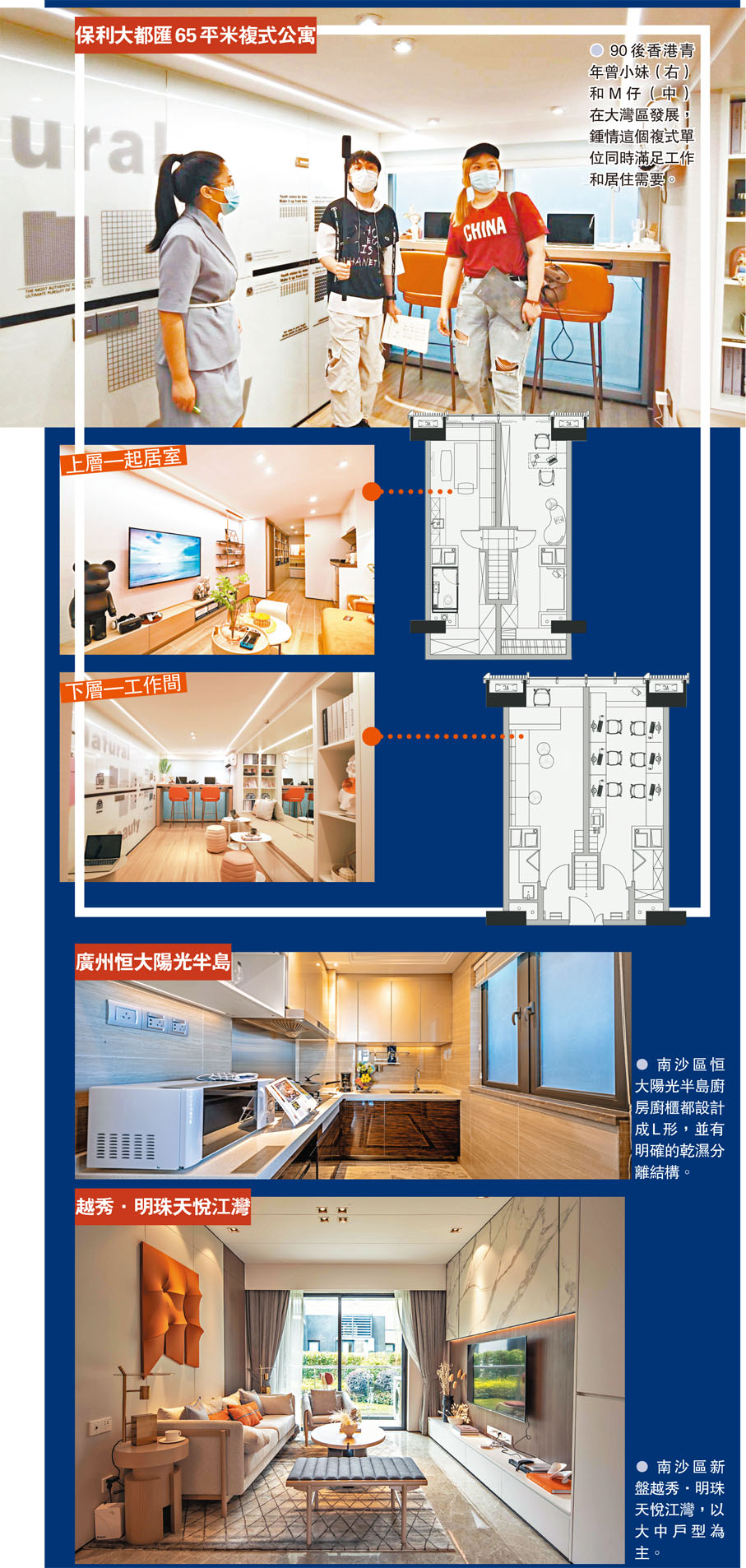 在參觀了距離廣州南站僅十幾分鐘車程的保利大都匯樣板間後,曾小妹對65平米的複式公寓十分喜歡,上下兩層共4間房的格局,讓整套公寓有了可以進行多種規劃,「樓下兩間房空間很大,可以打造成直播間和會議室進行工作,樓上兩間房分別在樓梯兩側,可以裝獨立的門,私密性也很好,可以用作生活起居。」曾小妹認為,這樣兼顧工作和生活的小戶型,加上風格時尚的精裝修交付模式,對初來內地打拚的單身港青來說是最佳選擇。據有關資料,保利大都匯有關單位售價在160萬至190萬元之間,且可滿足居家辦公需要,比起香港納米樓都要三四百萬港元,廣州的樓價真是非常親民。
