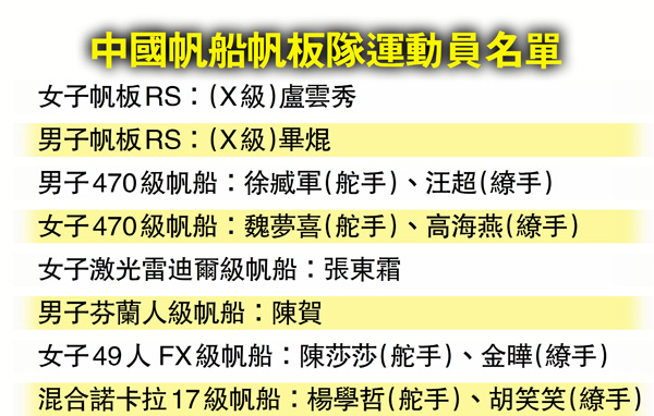 中國帆船帆板隊日前已公布奧運參賽名單,男女共12名選手出征東京。其中女子帆板是主要奪金點,來自福建的25歲選手盧雲秀,在2019年美國邁阿密世界盃賽中獲得冠軍。
