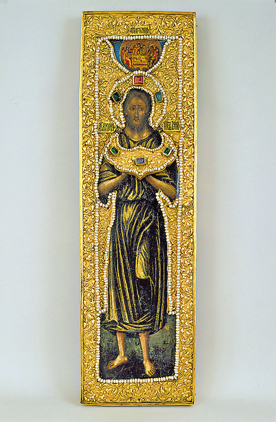 此聖像是按沙皇阿列克謝·米哈伊洛維奇剛剛出生的身高所製作。一般來說,聖像會畢生伴隨着皇室新生成員,放置在宮中的私人禮拜室。直到這位成員離世,聖像則會被放置在沙皇陵墓上方的聖像壁中。