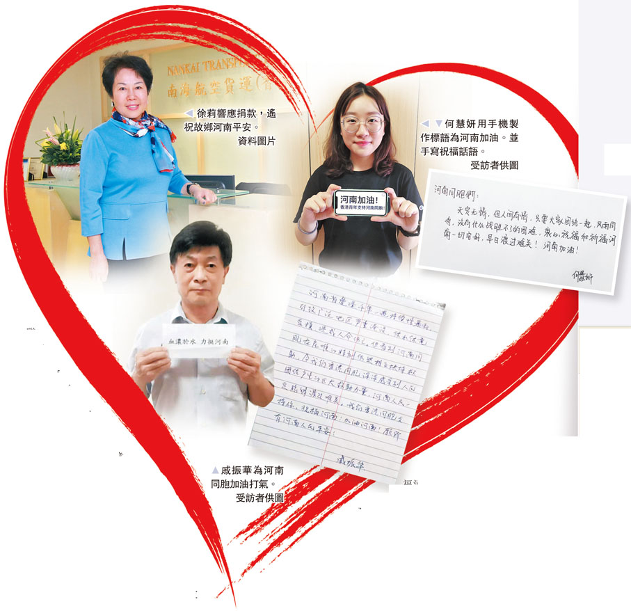 香港青年何慧妍在看到河南發生水災後,積極捐款並拍攝打氣短片、手寫祝福話語,希望河南同胞一切安好。她說,看到河南市民受災,自己感同身受。「我問自己,如果是我遇到洪水上漲,又被困地鐵車站,我會不會一樣彷徨失措、害怕無助?答案是肯定的。」