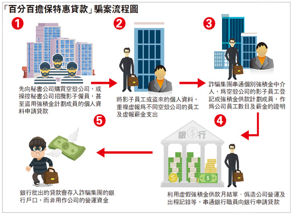 詐騙集團亦串通個別強積金中介人,為影子員工登記成為強積金供款計劃成員,作為公司員工數目及薪金的證明。