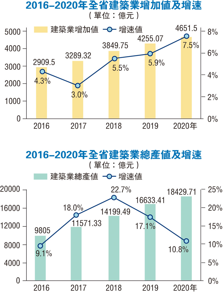 數據顯示,2020年,廣東省完成建築業增加值4,651.50億元,同比增長7.5%,增速高於同期地區生產總值5.2個百分點;完成建築業總產值1.84萬億元,同比增長10.8%,佔全國建築業總產值的7.0%,產值規模居全國第三,持續發展後勁足。