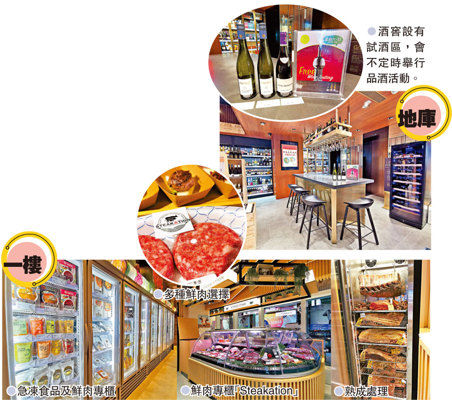 至於一樓的急凍食品及鮮肉專櫃,則設有超過二百款急凍食品,當中包括多個本地生產的急凍餸包、急凍湯包,甚至街頭小食,可算是疫情下的烹飪好幫手。同層的鮮肉專櫃 「Steakation」,更提供由超過20年經驗的五星級酒店廚師進行質量把關的多種鮮肉,當中包括西班牙黑毛豬、日本和牛、優質美國牛肉及熟成牛肉等高級肉類產品,顧客更可現場向大廚請教肉類的選擇及煮食建議,根據個人喜好訂購全條牛肉可作免費的熟成處理,享受個人化的美味之選。