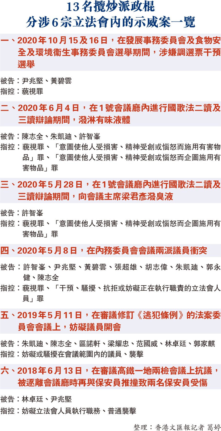 13名攬炒派政棍分涉6宗立法會內的示威案一覽