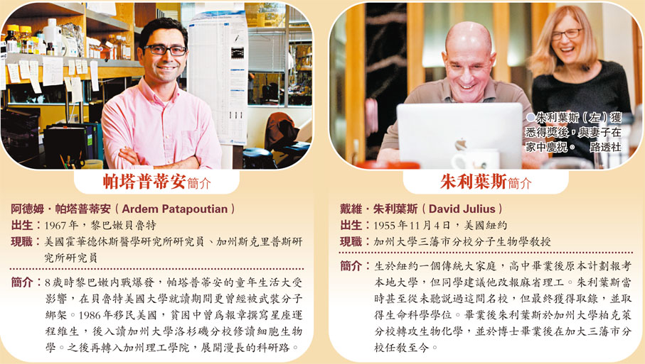 人體感知熱、冷、觸碰等感覺的能力,對人類生存及與周圍環境互動非常重要,不過神經系統到底是如何運作來感受溫度或物理壓力,則多年來都沒有答案。來自美國的兩位科學家朱利葉斯及帕塔普蒂安,透過多年研究辨認出感知熱力或物理刺激的細胞,促進醫學界理解感知系統這一基本生物功能的機制,為研發針對慢性痛症等病徵的藥物打開大門,並憑此貢獻於昨日獲頒本年度諾貝爾生理學或醫學獎。其中朱利葉斯早於2010年已憑同一研究獲頒邵逸夫獎,早被視為諾獎熱門之一。