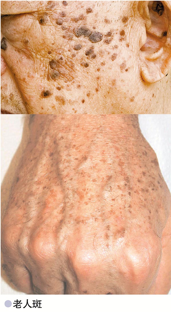 另外,必須提到,即使是很常見的老人斑,也不能忽視。老人斑,西醫學名為脂溢性角化病,嚴格來說不屬於色斑,是良性角質及表皮層增生,然後合併色素增加的現象。然而,它的顏色越深、凹凸感越強、數目範圍越多越廣,就代表身體內氣血滯而不通的可能就越高。再加上大部分長者的氣血多較虛弱,想像一下,這就如同在一條大河道中,水源匱乏,這樣水的流通必然很緩慢。如此本來堵塞的地方肯定會隨氣血的衰弱,變得更難流通。所以,家中有老人的,也不妨多觀察他們面部上色斑的分布與顏色深淺,或能對身體問題有預警作用。