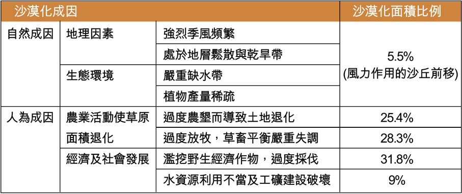 沙漠化成因/沙漠化面積比例