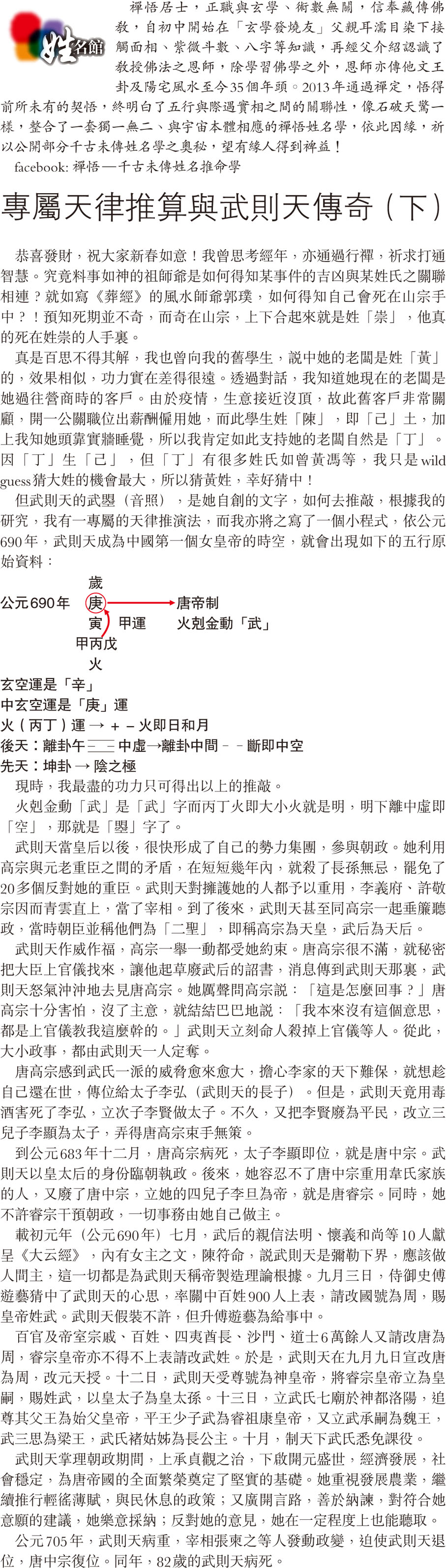 【姓名館】 專屬天律推算與武則天傳奇 (下)