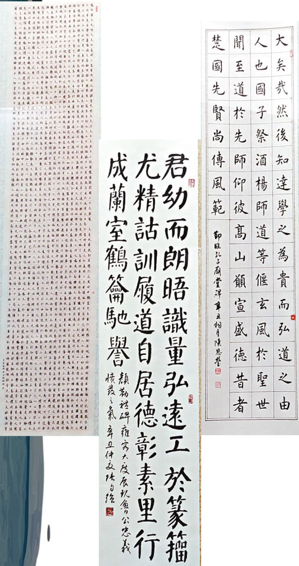 據了解,本次臨書活動和展覽由中國宋慶齡基金會和陝西省文物交流協會指導,西安碑林博物館和台灣中華翰維文化推廣協會共同承辦。在過去一年多時間裏,組委會面向海峽兩岸各界人士,共徵集到各類臨書作品一千六百餘件。最終經專家認真遴選,分中學組、大學組、社會組等三個組別,評出獲獎作品一百零一件,其中,大陸作品五十一件,台灣作品五十件。本次展覽便是得獎作品的一次集中展示。