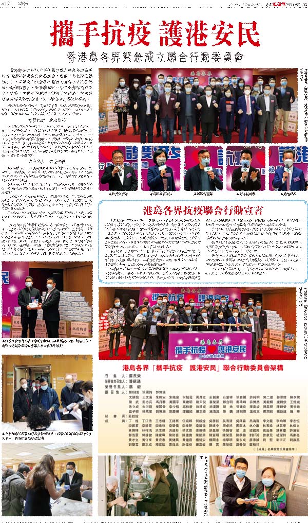 攜手抗疫 護港安民 香港島各界緊急成立聯合行動委員會