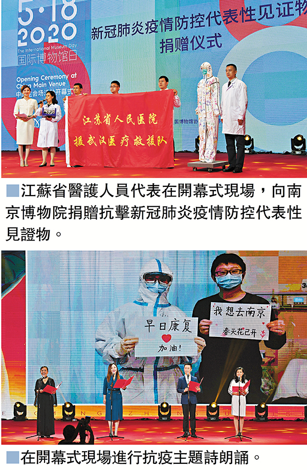在今年主會場活動開幕式上,有關單位在現場向南京博物院捐贈一批反映合力抗擊新冠肺炎疫情的物證資料,並舉行向醫護人員致敬活動。此外,活動現場更進行了主題為《生命重於泰山》的抗疫主題詩朗誦。