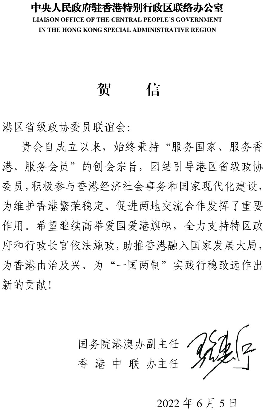 港區省級政協委員聯誼會日前假香港會展中心舉辦「慶祝香港回歸祖國25周年暨港區省級政協委員聯誼會成立16周年典禮」。全國政協副主席梁振英、香港特區行政長官林鄭月娥、候任行政長官李家超等出席並擔任主禮嘉賓。中聯辦主任駱惠寧為慶典發來賀信,希望聯誼會繼續高舉愛國愛港旗幟,全力支持特區政府和行政長官依法施政,助推香港融入國家發展大局,為香港由治及興、為「一國兩制」實踐行穩致遠作出新的貢獻。林鄭月娥、中聯辦副主任譚鐵牛先後致辭,為港區省級政協委員聯誼會送上祝賀,並期盼聯誼會能夠做得愈來愈好。