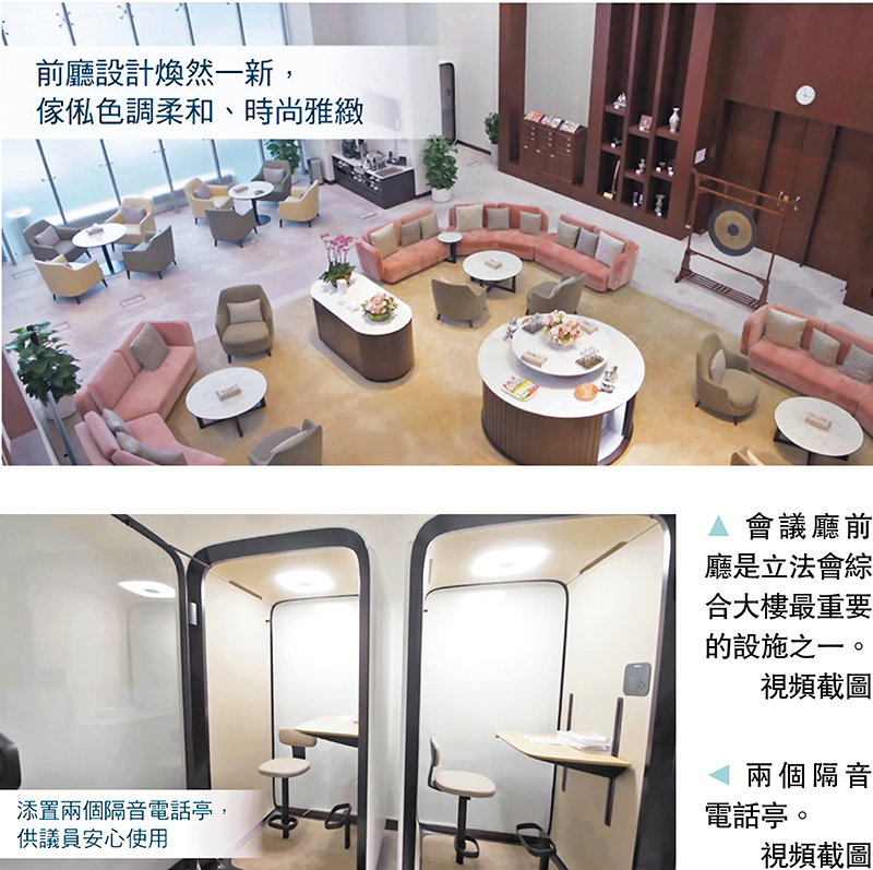 立法會主席梁君彥昨日在Facebook發帖介紹,會議廳前廳是立法會綜合大樓最重要的設施之一,屬議員專區。他去年邀請香港知專設計學院的學生協助秘書處活化前廳,改善其室內設計和布局,將前廳劃分為多個可讓官員與議員交流互動的區間,作為大家「坐低傾」、促進行政立法良性互動的理想聚腳地。