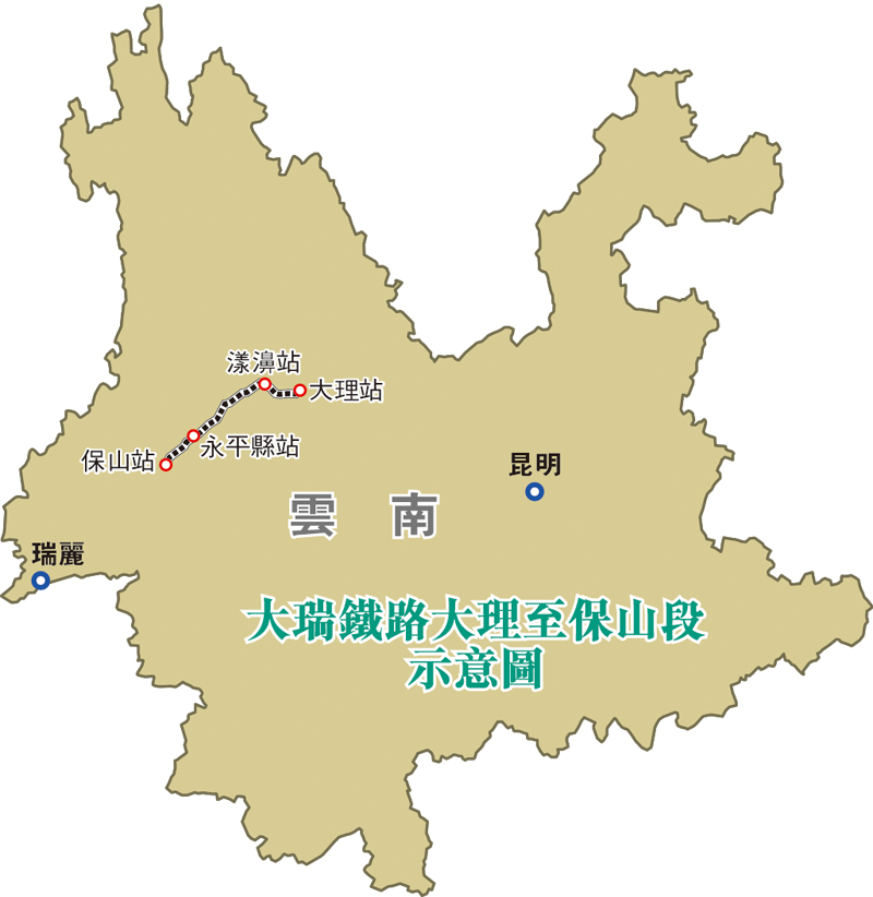 大瑞鐵路為泛亞鐵路西線、中緬國際大通道的重要組成部分,是中國《中長期鐵路網規劃》中完善路網布局和西部開發重點項目。本次開通的大瑞鐵路大理至保山段全長133公里,連接大理市和保山市,設計時速140公里,為國家I級單線電氣化鐵路,全線共設5座車站,其中4座車站開辦客運業務、3座車站開辦貨運業務。