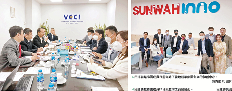 民建聯越泰團於9月4日抵越後,先後拜會國家駐胡志明市總領事魏華祥,並和當地的工商會、港資大企業會面交流,又到訪了當地的初創中心,以及參觀了當地衣服批發市場和以中產人士為對象的商場等。