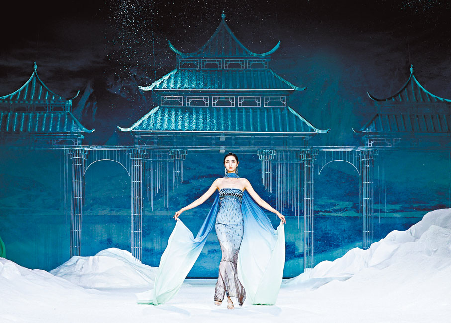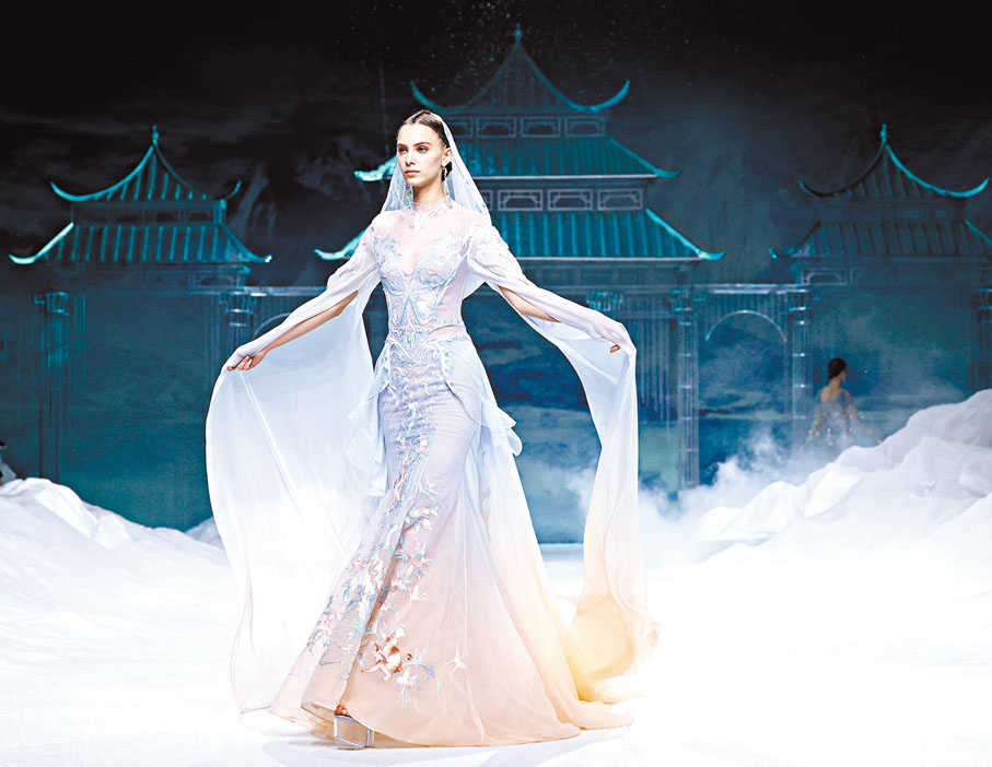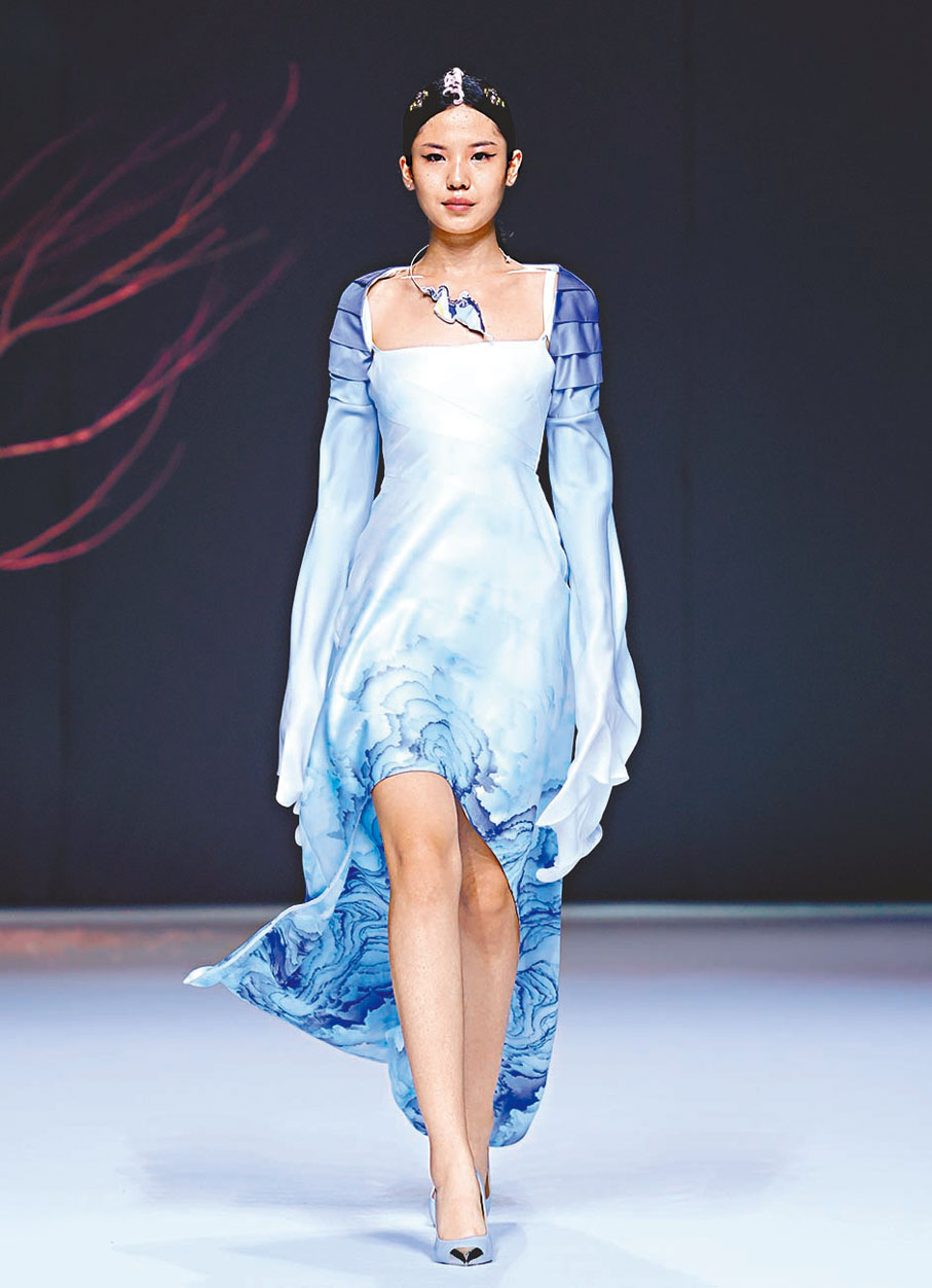 ◆模特兒在開幕秀上展示設計師熊英設計的時裝。