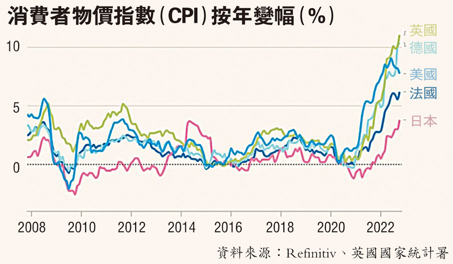 凱投宏觀首席全球經濟學家麥基翁預計,隨着市場需求減弱、多數大宗商品價格下跌,全球通脹明年料會放緩。不過英國金融服務公司Hargreaves Lansdown高級投資和市場分析師斯特里特提醒,能源價格或持續高企,例如歐盟對俄產石油的禁令可能繼續推高英國和歐元區的通脹。