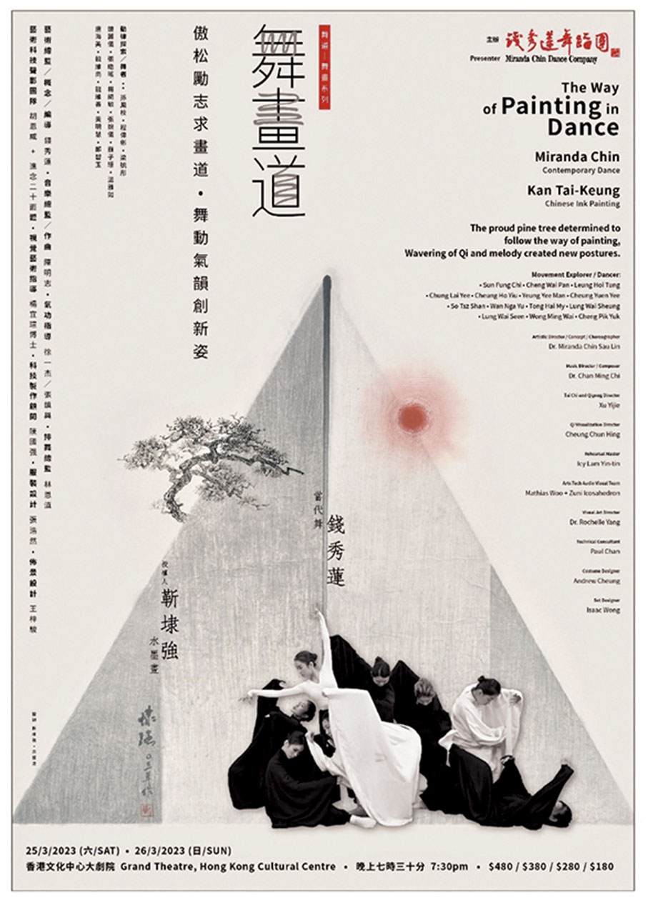 著名舞蹈家錢秀蓮開創舞畫系列,系列首個作品靈感來自創意山水畫大師靳埭強五十年的作品,融合當代舞與水墨畫,創作出《舞畫道》。作品以「傲松勵志求畫道·舞動氣韻創新姿」為主題,舞蹈內容根據靳埭強不同時期畫風發想,希望通過是次表演,讓舞者感受他鍥而不捨、如松樹般堅毅的精神,也帶出師古、師自然,成就自我的成功持續的藝道。