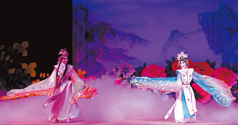 粵劇每一個劇團演《梁祝化蝶》,都有一套為女主角特別設計的蝴蝶裝,另還有一群助舞的蝴蝶仙,七彩蝴蝶舞翩翩的場面煞是好看。
