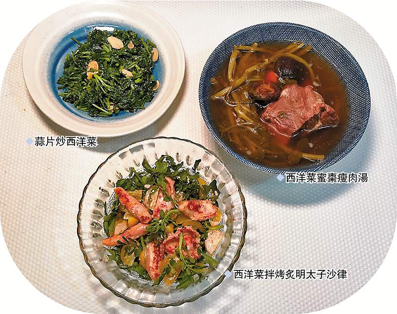 西洋菜是一種非常有益健康的食物,它含有豐富的營養成分和多種健康功效,是十字花科植物,原產於歐洲,現在已被廣泛種植在世界各地。它還含有豐富的膳食纖維,有助於促進腸道健康,防止便秘和其他腸道問題,還有助於減少心臟病和中風的風險,因為它能夠降低膽固醇和血壓。因此,今期就用西洋菜為主食材,為大家做成涼拌沙拉、養生湯及炒菜。