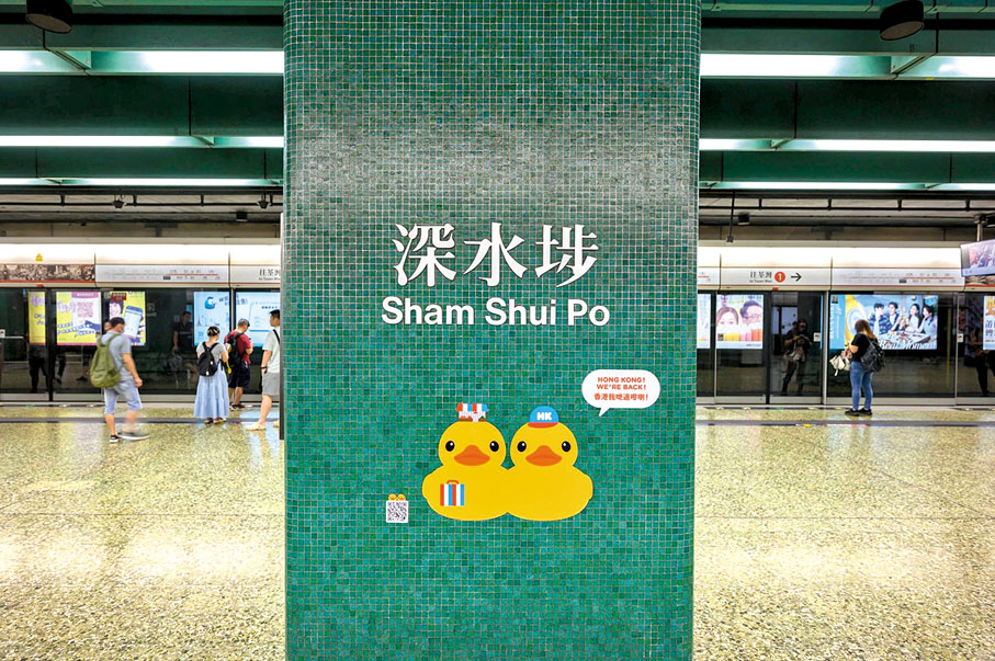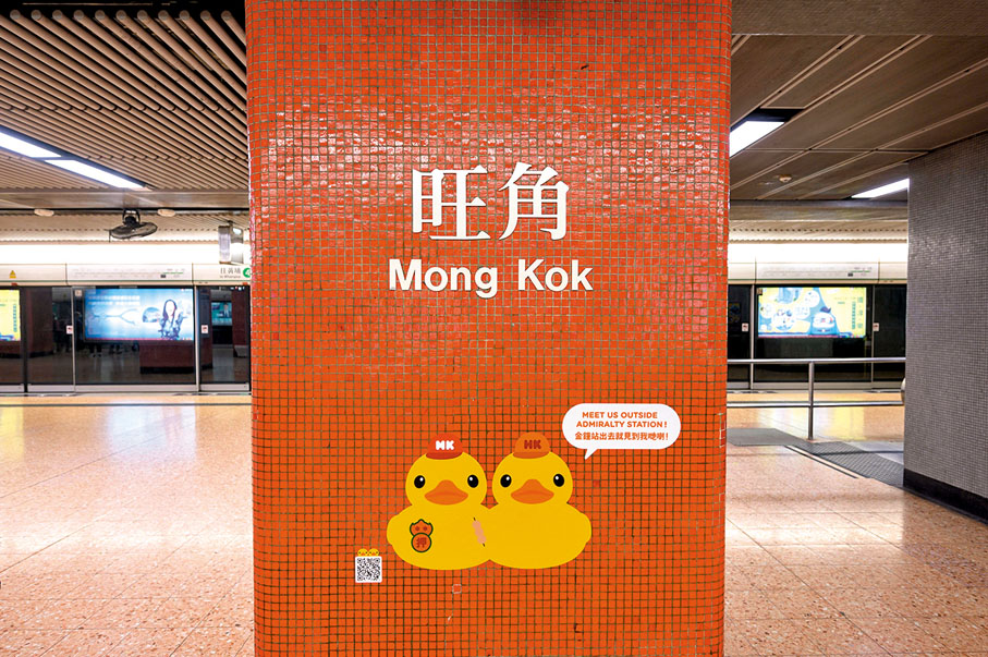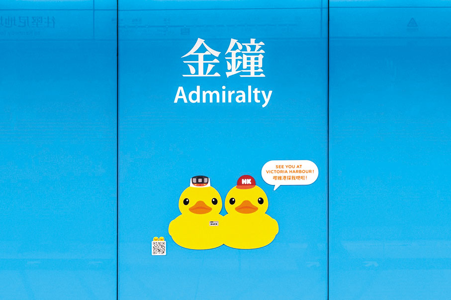 荷蘭藝術家霍夫曼(Florentijn Hofman)創作的巨型橡皮鴨,即將以《橡皮鴨二重暢》姿態在本月10日重臨維港。儘管巨鴨還未游到維港,但港鐵公司和主辦機構AllRightsReserved 已經合作將可愛鴨子的蹤影帶進港鐵站的不同角落,當中最矚目的是金鐘站E出口的6米高半圓玻璃天窗的橡皮鴨超萌現身。橡皮鴨先行透過港鐵網絡走入社區,合共覆蓋24個港鐵車站,為乘客獻上一趟充滿童心的橡皮鴨港鐵藝術旅程。◆文、攝:香港文匯報記者 樊慧杰 部分圖片由主辦方提供