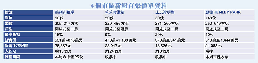 面對本港拆息持續高企,市區新盤戰升溫下,發展商均採取低開策略,以「價細」搶客。恒基地產旗下已屆現樓的啟德HENLEY PARK昨日公布首張價單共148伙,折實平均呎價21,088元,較毗鄰同系的THE HENLEY II去年4月首批折實平均呎價24,333元低逾13%,250方呎開放式戶折實518.2萬元入場。至於揚言參考啟德新盤價、佳明集團旗下樓花期約3個月的土瓜灣明雋同日亦公布首張價單共30伙,折實平均呎價18,526元,貼近同區傲形二手呎價18,293元,231方呎開放式戶折實入場378.56萬元,為今年九龍區最低入場費新盤。◆香港文匯報記者 梁悅琴