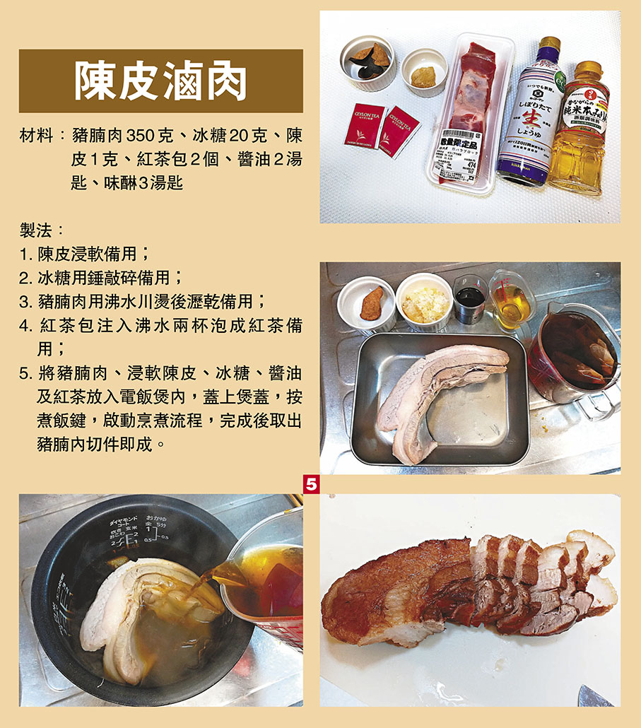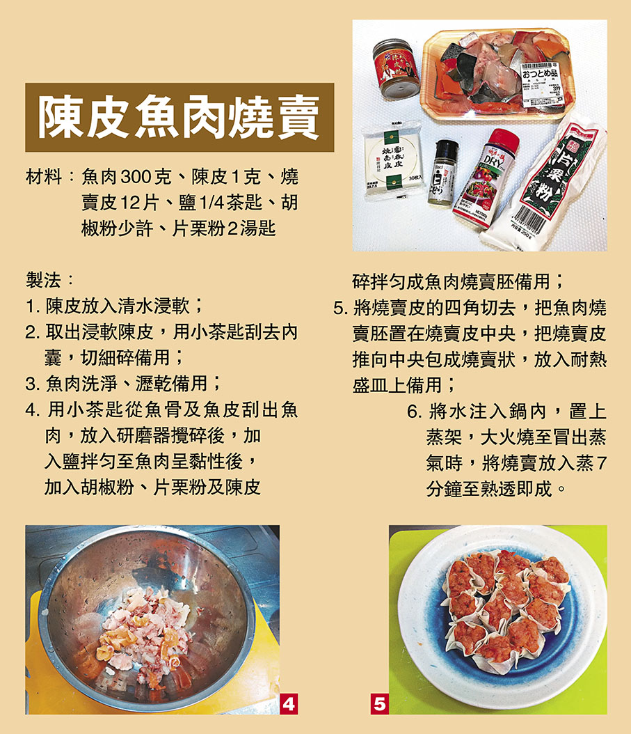 俗語話廣東有三寳︰陳皮、老薑、禾稈草,當中陳皮的養生功效辛行溫通,可以行氣止痛、健脾和胃,因此可用於治療脾胃氣滯,胃腹脹痛、噁心嘔吐的病症,還有燥濕化痰、宣肺止咳的功效,可以治療咳嗽痰多。除了舒緩腸胃,陳皮中含有檸檬烯,檸檬烯是柑橘類果皮中富含的成分,具有酸甜清爽的香味,有放鬆的效果。 因此,如果你有腸胃不適、呼吸系統問題或者想要減肥,可以考慮食用陳皮泡茶飲或以此入饌,今期為大家準備了三款陳皮菜式。◆文、攝︰小松本太太