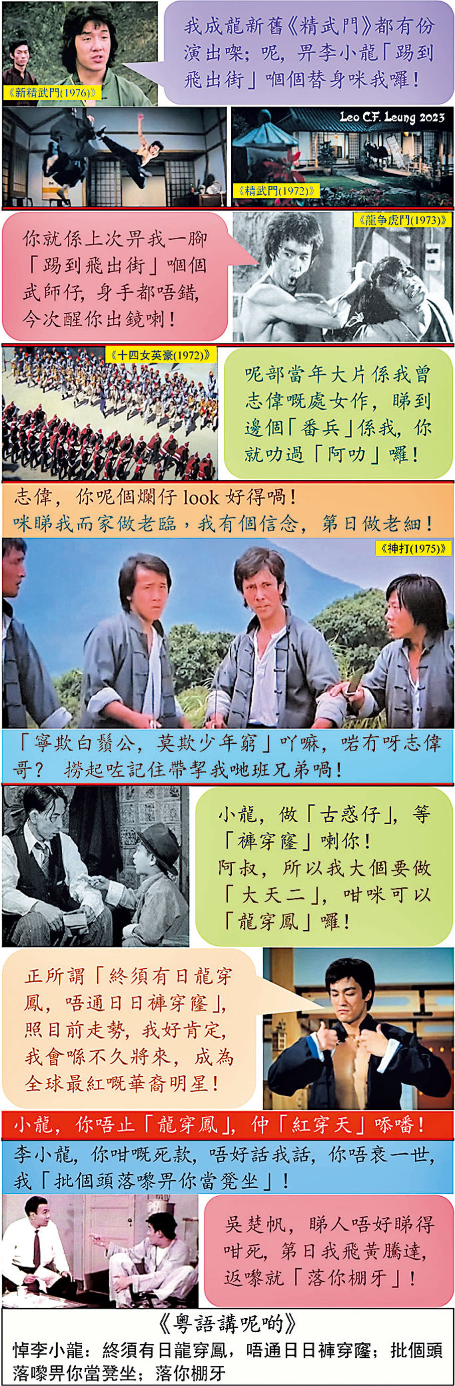 【粵語講呢啲】悼李小龍:終須有日龍穿鳳,唔通日日褲穿窿;批個頭落嚟畀你當凳坐;落你棚牙