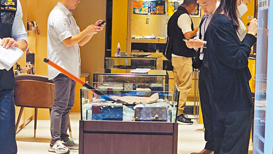名牌鐘錶珠寶金行林立的尖沙咀區,繼今年7月發生5名刀鎚匪徒闖入麼地道一錶行劫去8隻總值約380萬元名錶,警方迅速破案連日拘捕3名疑犯;昨日廣東道一間錶行亦遭3名分持刀鎚的非華裔匪徒闖入指嚇職員,掠去20隻總值約370萬元名錶,登上接應的七人車逃去,整個犯案過程僅約半分鐘。西九龍總區重案組探員經追查1個半小時後閃電破案,在飛鵝山拘捕一名涉案匪徒及起回全部贓物,現正追緝其餘在逃同黨。◆香港文匯報記者 蕭景源