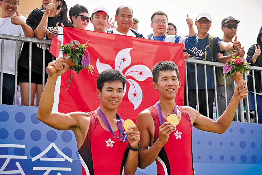 去年亞洲賽男子雙人單槳冠軍組合林新棟及王瑋駿昨晨於男子雙人單槳無舵手決賽,雖在首1,000米落後於烏茲別克組合,但二人後勁凌厲,最終以6分44.20秒率先衝線,為港隊取得杭州亞運首金,同時也是港賽艇隊自2014年仁川亞運憑駱均海在男子單人雙槳艇封王後,隊史第二枚亞運金牌(賽後訪問見A2版)。