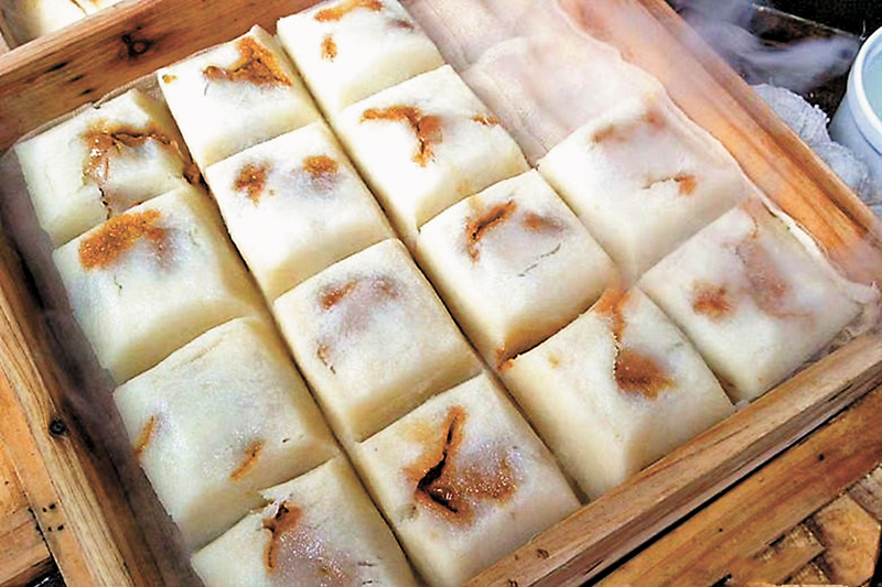新市茶糕:水鄉古鎮的傳統糕點,具有鬆、香、鮮三大特色。新市茶糕用糯米碾碎製作成正方形略薄的糕點,將中間挖空放入用醬油等調料醃製而成的碎豬肉,蒸製而成。口感糯而不黏、豬肉鹹香微帶甜味,每天早晨用新市特有的鹹豆漿或普通的鮮豆漿搭配茶糕作為早點,既美味又容易填飽肚子。