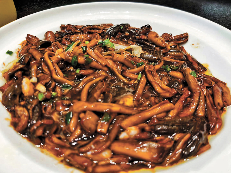 爛糊鱔絲:採用鮮活鱔魚焯水除腥,去骨去腸,用油爆炒,配以醬油調色,飾以「五絲」(火腿絲、青椒絲、薑絲、蔥絲、蝦仁)點綴,中間凹處放着蒜泥,上菜時用滾熱的豬油澆淋其上,滋滋作響。以「重油蒜棘,柔軟鮮嫩」而著稱。相傳在清乾隆年間,乾隆皇帝下江南路過南潯,品嘗之後,發覺味道鮮美,回味無窮,因此把爛糊鱔絲列為宮廷菜餚,這道菜因此成名。