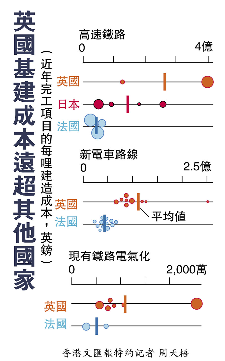 香港文匯報訊(特約記者 周天梧 倫敦報道)10月初,英國首相蘇納克正式宣布取消「英國2號高速鐵路」(HS2)工程中連接伯明翰至曼徹斯特的路段,這個決定反映了英國近年基建發展停滯不前的困局,亦成為英國經濟沒落的象徵。英國基建落後的問題存在已久,不但是全新的大型項目,就連翻新舊有老化基建也顯得力不從心,早已影響到民眾生活,英國政府一個專家委員會日前便發表報告,指英國每年需投入最少700億英鎊(約6,660億港元),才能讓基建設施追上時代需求,但分析普遍相信英國如今已負擔不起這筆開支。