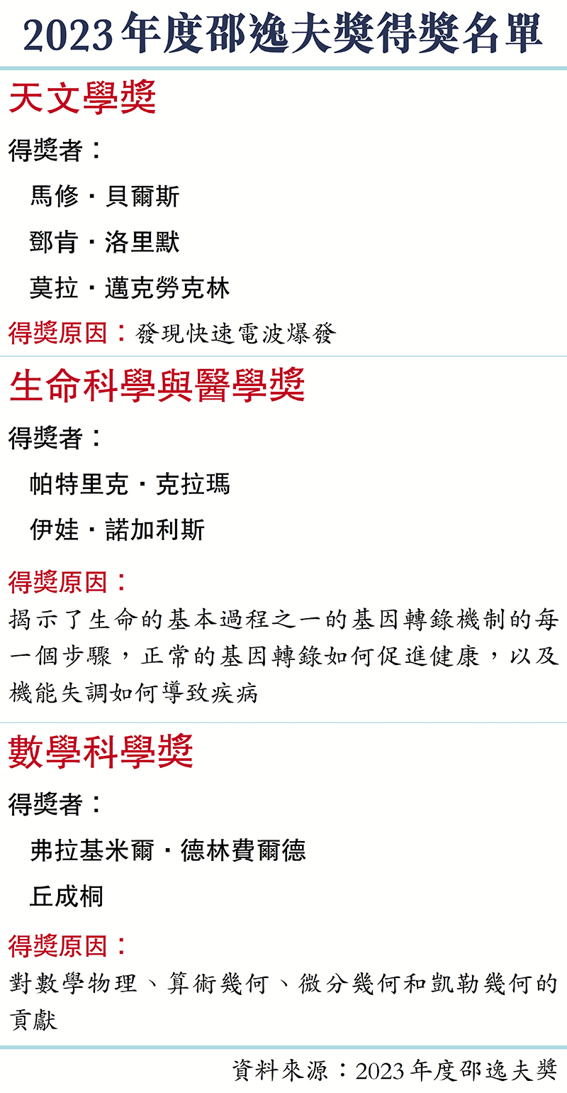 2023年度「邵逸夫獎」頒獎典禮昨日在香港會議展覽中心大會堂舉行。今次是疫情以來首個實體頒獎典禮,大會除了向2023年度「邵逸夫獎」各得獎者頒發獎章外,更同時邀得過往因疫情關係未能親自到港領獎的2020至2022年度得獎者逐一上台領獎。香港特區行政長官李家超在典禮上致辭,感謝所有獲獎者於各自領域作出的重大貢獻,強調在國家「十四五」規劃的支持下,香港決心發展成為國際創新科技中心,特區政府會致力打造有利研發、科學突破和研究成果,以及可持續商業化的創新生態系統。