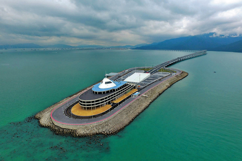 行程中,遊客可近距離遊覽「風帆」造型的九洲橋、「海豚」造型的江海橋、「中國結」造型的青州橋三座通航孔橋,還可能偶遇有「海上大熊貓」之稱的中華白海豚。同時,遊客停留的藍海豚島採用「蠔貝」造型,吸收「騎樓」元素,擁有世界最大的海工清水混凝土建築群。