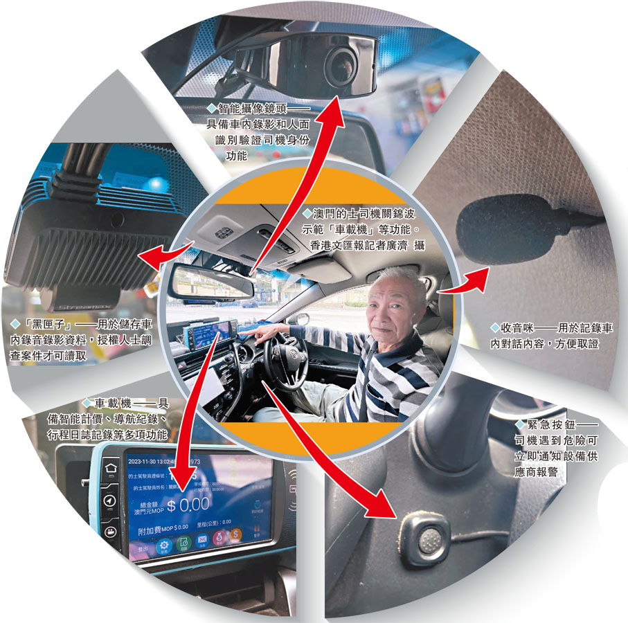 魏子傑表示,明年澳門特區政府發500個的士新牌,規定該批的士必須安裝電子支付設備,以及司機行為監察系統,車內外還安裝攝像頭和雷達,監察司機有無疲勞駕駛、單手握方向盤等,車外鏡頭和雷達則用以識別司機有否危險駕駛、不遵守交通規則,並透過AI技術記錄並分析行為次數。