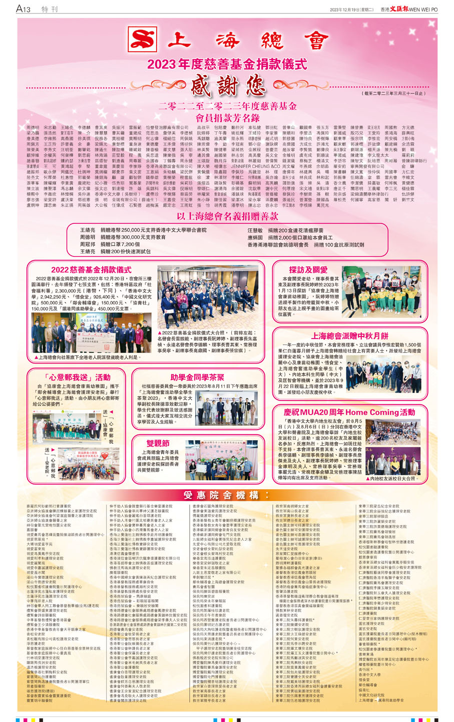 上海總會2023年度慈善基金捐款儀式 感謝您