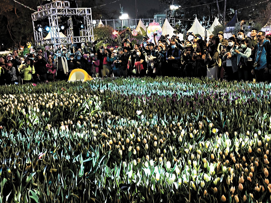鬱金香花海中「燈光秀」