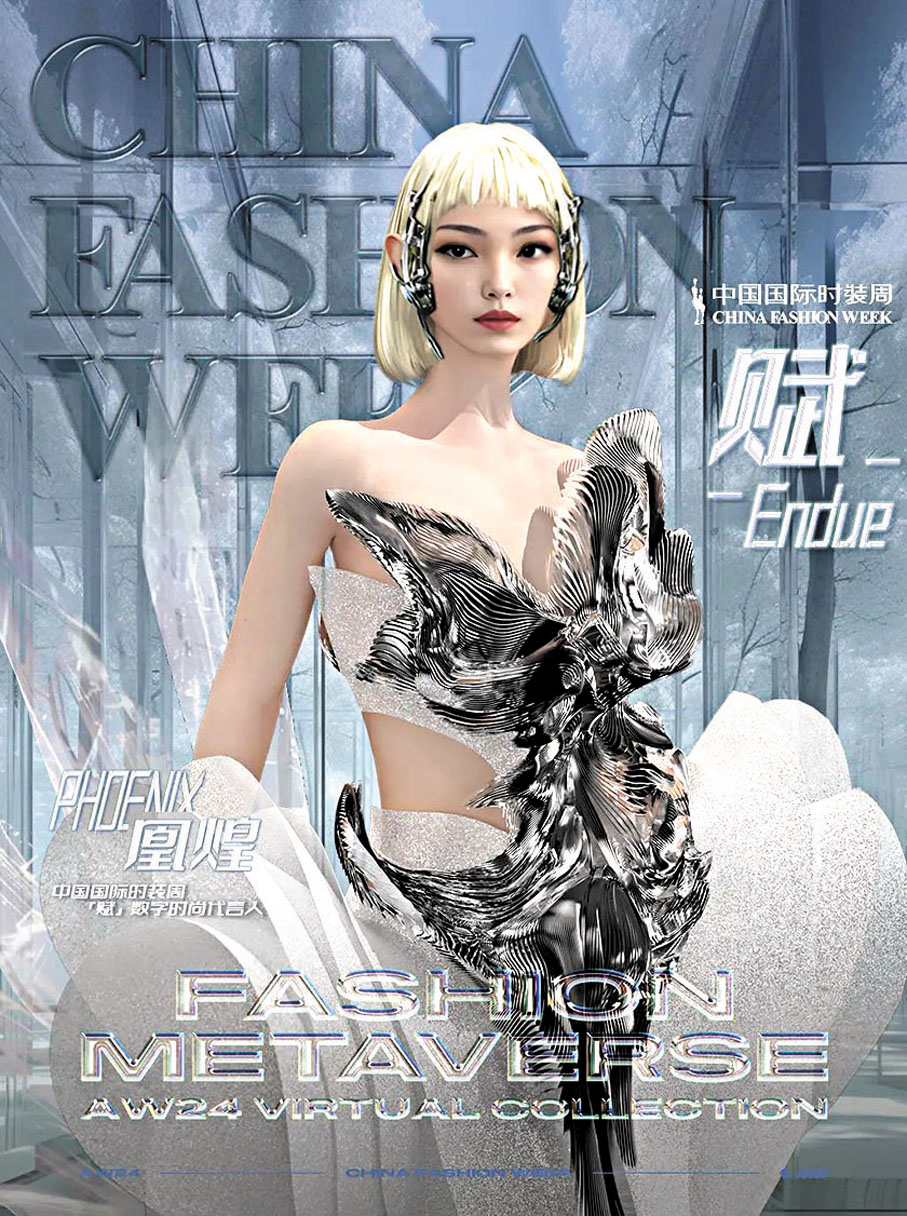 隨着AI技術的突破性發展,人類開始進入信息技術的全新時代。未來已來,代表着實用生活消費和創新生產力的時裝時尚產業也面臨全新的機遇和挑戰。今季中國國際時裝周發布了數字交互全息體驗「真實世界:我來了」,打造線下數字時尚秀場、交互打卡窗口,引發觀眾互動熱情。當中,時裝周「賦」數字時尚代言人「凰煌Phoenix」由數字藝術家余一萌提供時裝設計、青年藝術家夏薏婷提供技術支持。「賦」數字藝術發布51套數字時裝,全過程AIGC秀場/時裝製作,9個數字時尚設計師及數字工作室,成為今季時裝周一大熱門。